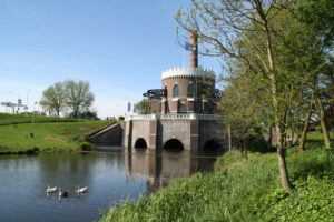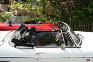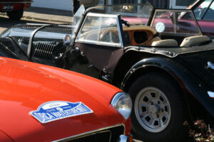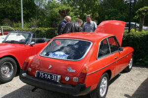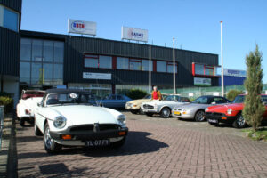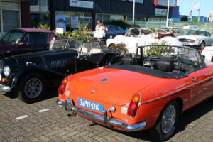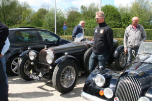 De 3e etappe ging via het plassengebied en de bollenvelden richting Haarlem. Helaas was er zondag 13 mei niet veel meer te zien van de gekleurde bloembollenvelden die zo typerend zijn voor Hillegom en Lisse. Op de oorspronkelijk geplande datum lagen de bollenvelden er nog fleurig bij echter werkte het weer toen niet echt mee, een klein lesje in omgaan met teleurstellingen. Zo ook de vermillionred MGB, die na de stop bij de watertoren in Bennebroek niet meer verder wilde maar zoveel warme handen op zijn kont niet kon weerstaan en na aangeduwt te zijn weer door kon rijden. Hier liet de fotograaf weer een fotomoment liggen door mee te gaan duwen. 100 punten… in mindering wel te verstaan! Van hieruit ging de watertorenrit langs de Ringvaart verder naar Museumgemaal Cruquius voor de laatste tussenstop.