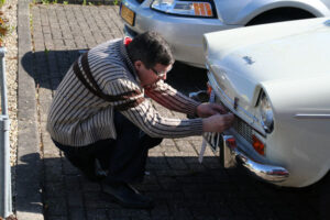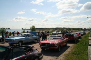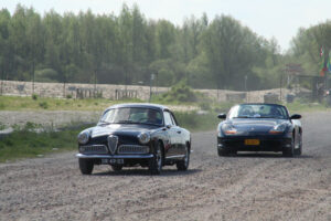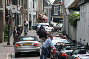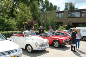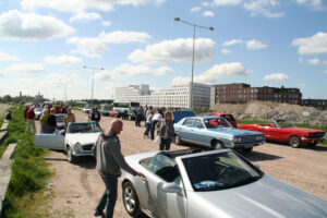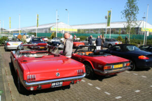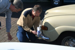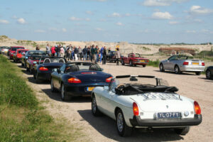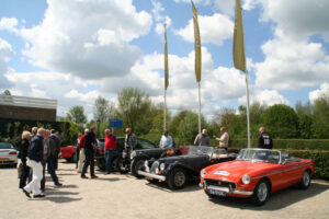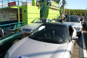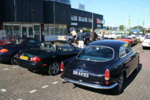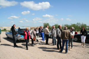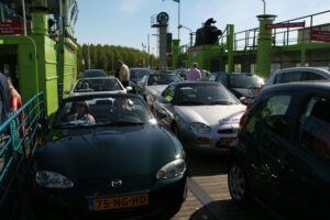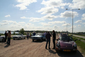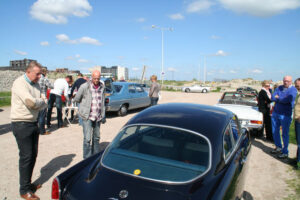 De ontvangst was in het Business Centre Westerspoor, daar startte de rit bij ritsponsor Revivre Projectmanagement in Zaandam. Revivre, in de persoon van Peter Bottelier, had de moeders zeker niet vergeten en bood hen een vlijtige lies aan. Wellicht een stille hint naar het fungeren als navigator… Na de nodige formaliteiten, koffie, briefing en het bewonderen van voertuigen van de nieuwe leden vertrokken de eerste equipes rond een uur of tien (plus zaans kwartiertje) voor de eerste etappe naar IJburgstrand. Naar de reacties te oordelen voor velen een nog onbekend stukje Amsterdam. Nadat de meeste equipes het strand op reguliere wijze hadden weten te vinden arriveerde Peter met zijn bedienend personeel in de Fairlane met de koffie en de koekjes. Na de koffie weer de weg op voor de tweede etappe. Het zonnetje deed overigens zijn uiterste best om het zonder kap rijden mogelijk te maken.