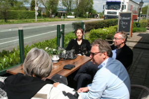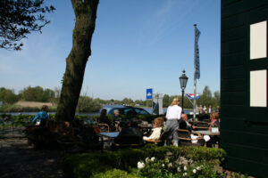 Het oergezellige Muiden werd probleemloos gepasseerd omdat elke zondag na 12.00 uur de enig doorgaande weg wordt afgesloten. Via Naarden, Bussum en Hilversum werd er koers gezet naar Restaurant Le Virage in Mijdrecht, de tweede pleisterplaats in deze meer dan 140 km lange rit. De toerrittencommissie had de komst van de ORCA aangekondigd zodat deze het terras konden belegeren zonder op weerstand te stuiten. Peter had consumptiebonnen gemaakt en wist voldoende vertrouwen bij de eigenaar van Le Virage te wekken zodat daar probleemloos gebruik van gemaakt kon worden. Maar ja, de tijd vliegt als je pret hebt dus hoogste tijd, politie te paard, tussen de wielen en op naar de volgende stop.