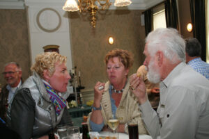 Bij het Theehuis Cruquius kon er gekozen worden om op te steken of door te rijden, via pontje Buitenhuizen, naar het Raadhuis van Assendelft. Daar wachtte Peter met zijn hofhouding de deelnemers op en werden zij getrakteerd op een hapje en een drankje in een nostalgische sfeer. Toen alle deelnemers gearriveerd waren konden de vragenlijsten ingeleverd worden bij de toerittencommissie die daar twee winnaars en één verliezaar, na het controleren van de antwoorden, uit selecteerde.