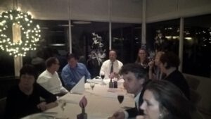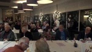 Aan romantisch gedekte tafels gaan we samen genieten van een drie gangen menu. Keuze tussen vlees of vis. De ruimte is voor ons omgetoverd in een geweldige warme en welkome kerstsfeer met feestelijk gedekte tafels.