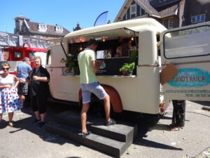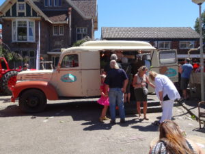 De Eat en Meet Foodtruck, een Ford Keulen V8 uit 1955, verzorgde een pittige hamburger.