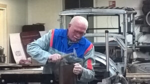 Dirk Kuiper, de meester plaatwerker uit Westzaan, geeft een referaat over wat er komt kijken als je besluit om een auto te gaan restaureren. In zijn restauratie atelier neemt hij ons mee in de diepere krochten van de restauratietechnieken.