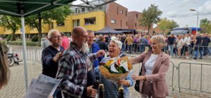– Rond 14.30 uur rijden we het wielercircuit op. We rijden enkele rondes over het parcours. De ¨navigatoren¨ genieten van alle aandacht; veel mensen staan langs het circuit te zwaaien.