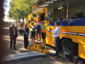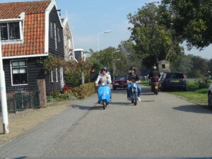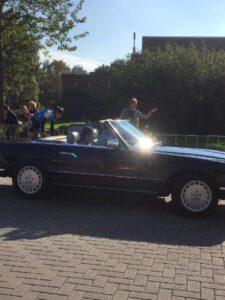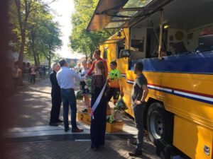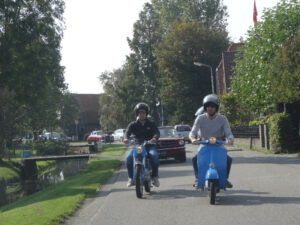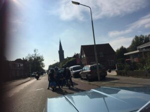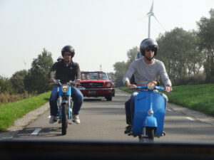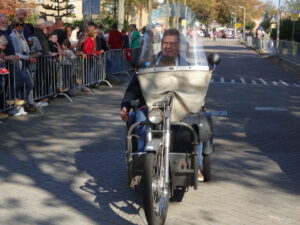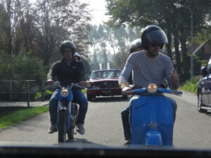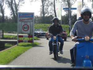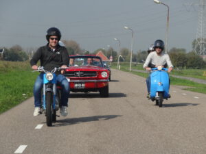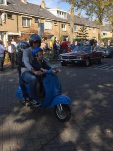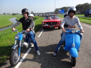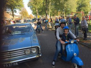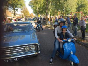 De kinderen krijgen daarna een plekje toebedeeld in de oldtimers. In optocht maken we een rondrit door Assendelft. De rit eindigt met een aantal rondes over het wielercircuit bij de kermis. De tour wordt begeleid door motoren, die ook uit de 70-er jaren stammen.
