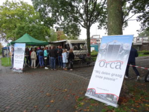 Na de tourtocht stellen we de oldtimers op in de buurt van Festina Lente Daar staat het bekende Orca-standje. Tijdens een gezellige “meet en greet” zijn de oldtimers te bewonderen voor alle autoliefhebbers.