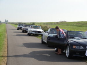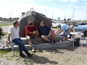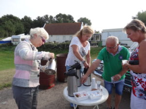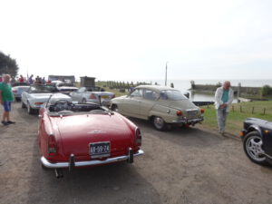 Het ‘toetje’ van dit weekend stond vanaf vier uur klaar in Nauerna. Nog wat na kletsen, de prijsuitreiking van de puzzelrit, een laatste biertje, uitingen van lof voor de organisatie in de personen van Aaldert en Peter en dank aan Bob die op dag een de Teal van Aaldert weer aan de praat kreeg, op dag twee een bobine uit zijn achterbak toverde voor de Morris van ondergetekende die er vervolgens werd in gesleuteld door Siem. En het was weer Bob die als reddende engel de Saab van Karel op sleeptouw nam omdat deze het allemaal wat te heet werd onder zijn Zweedse motorkap. En zo is iedereen weer veilig thuis gekomen. All’s well that ends well zeggen de Engelsen dan en er gingen al stemmen op om volgend jaar Lemmer II te organiseren. Oeps….heel verleidelijk maar het lijkt me link. Je gaat vergelijken en om hier overheen te gaan… dat zal niet meevallen.