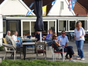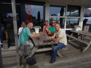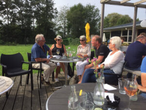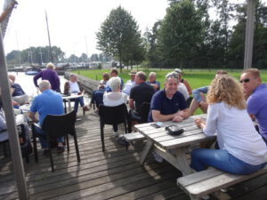 De lunch werd genuttigd op een uniek gelegen terras met uitzicht op het Slotenmeer en nog steeds deed de zon op deze zaterdag volop zijn best om het ons nog meer naar de zin te maken.