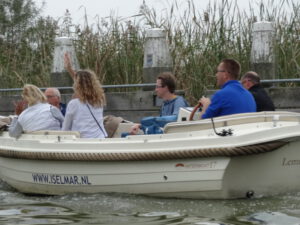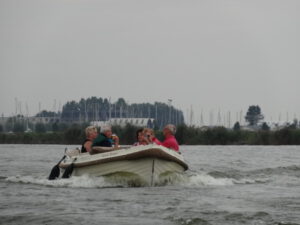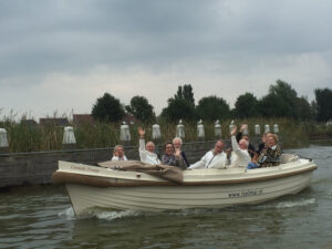 Halverwege de middag verruilden we de auto’s voor een aantal sloepen. Je bent in Friesland of niet. En voorzien van drank en specerijen geleverd in een verdomd handig koeltasje ( met dank aan sponsor IAM Management) gingen we van de kant om over een brede vaart richting de grachten van Sloten en weer terug te dobberen. Nou ja dobberen…de goed geïnstrueerde stuurlui die deze keer niet aan de wal maar achter het stuurwiel stonden probeerde snelheden te halen die een goeie oldtimer niet zou misstaan. Anyway.. met de avond nog in het verschiet meerden we weer veilig aan bij het hotel. Na een korte break voor een opfrisbeurt richtten we onze pijlen vervolgens op de avond waar een voortreffelijk verzorgde BBQ ons wachtte en deze dag culinair naar haar finale bracht. Tegen middernacht lagen de meeste Orcaneers dan ook voldaan en tevreden in hun mandje nog wat na te genieten van een heerlijke dag.