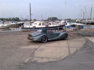 Bij mij de vraag waarom ik dit fraaie voertuig nooit eerder had opgemerkt. Ik was verkocht, een Morgan Aero8, klassieke en traditionele Morganlijnen, uitzonderlijk mooie kleur, Aston Martin Chiltern Green,Connolly leer, airco, sequentiele automaat, 369 pk, 4,89 liter V8 met ruim 500 Nm koppel, vol met geavanceerde BMW technologie, handmade lichtgewicht uit bijna 100% aluminium en van 0-100 in 4,2 seconden, zonder tractiecontrol. Ontwerp van Charles Morgan en Chris Lawrence in eigen beheer tot stand gekomen.