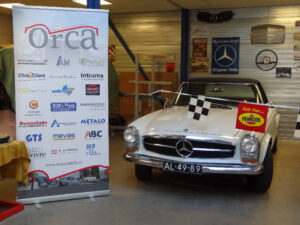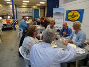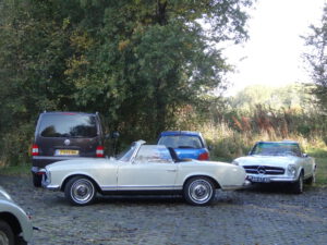 Maar toen kregen wij het geluk aan onze zijde. Verdiend natuurlijk. Aan de kant van de weg stonden wij nog even te overwegen of wij maar weer richting “Aan de Rak” zouden rijden, dan wel naar de Riviera zouden gaan, toen wij een aantal vertrouwde Oldtimers voorbij zagen scheuren. Wat een blijdschap overviel ons. Nadat wij ze bij de gesloten spoorweg overgang hadden ingehaald en aan ze vroegen of ze al koffie hadden gedronken, keek de bestuurder mij vreemd aan, met een blik van………… Hij antwoordde beleefd, maar van de Orca had hij nog nooit gehoord.
