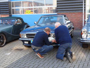 Wat hadden Tineke en ik er zin in.” De Duinpannen rit”. Het zou een makkie worden, vooral na mijn ervaring in de UK trip, waarin ik als navigator van Peter een uitermate bepalende rol speelde door iedere 4 minuten “links, links” te roepen. En dan natuurlijk de bijzonder moeilijke tocht door Friesland. Nu moesten Tineke en ik het helemaal zelf klaren en, zo bleek, met daverend succes. En dat als aspirant leden van een met naam en faam bekende Oldtimerclub.